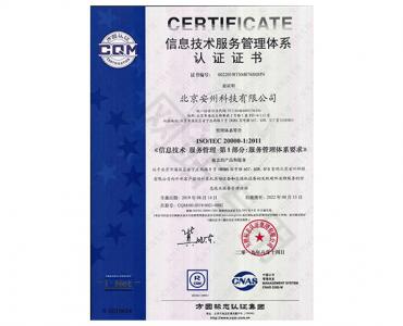 信息技術服務管理體系認證證書ISO 20000-1