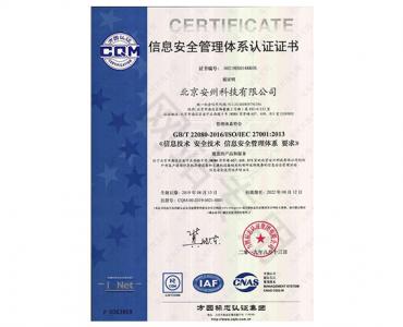 信息安全管理體系認證證書 ISO 27001