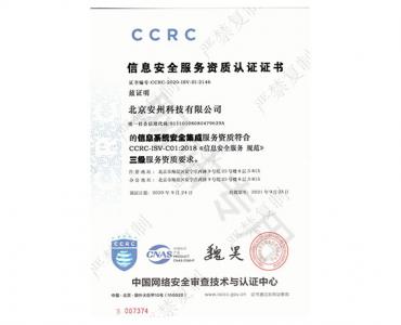 信息安全服務資質認證證書 CCRC-ISV-C01