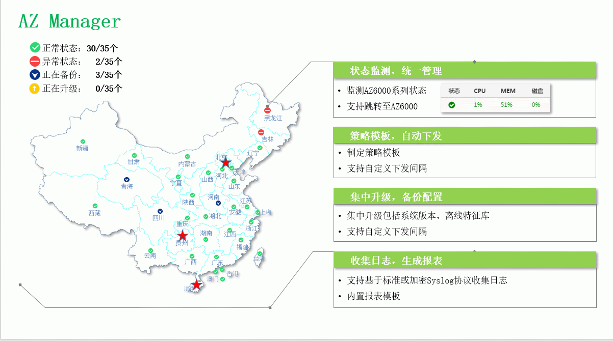 如果當(dāng)前環(huán)境中不存在日志存儲服務(wù)器或者日志審計(jì)類的平臺,AZ Manager具有設(shè)備的批量管理、策略下發(fā)、日志存儲等多重功能,是您的不二選擇。