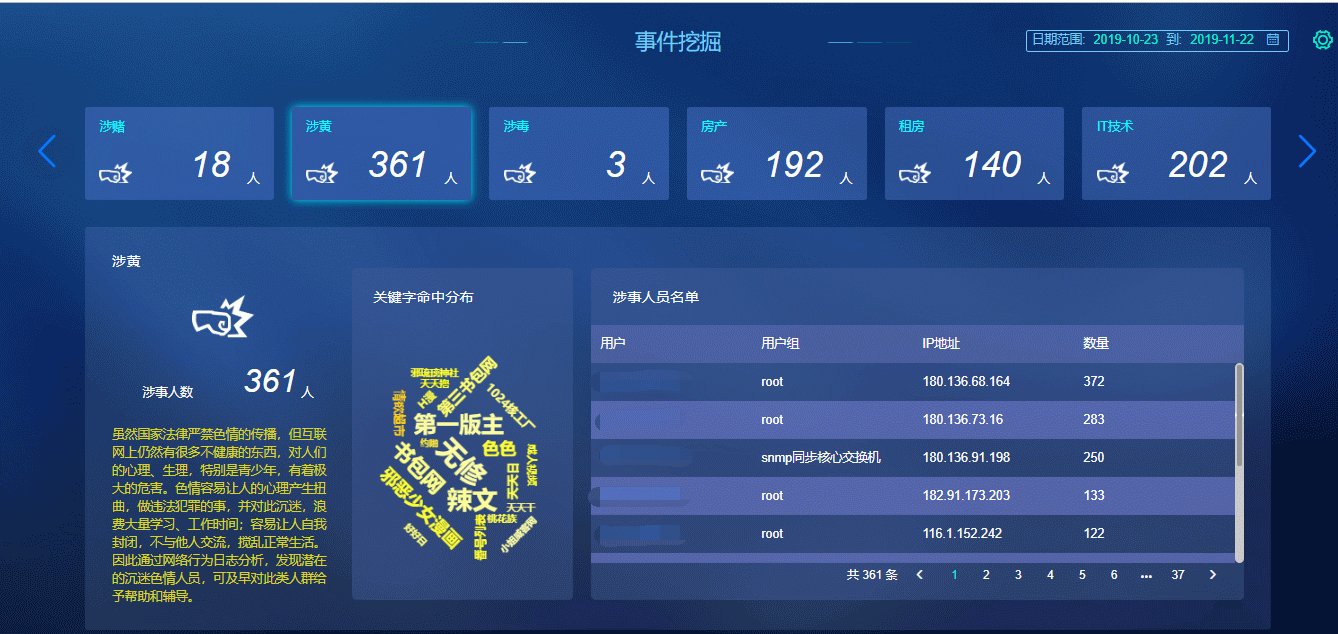 通過對學(xué)生上網(wǎng)行為審計(jì)日志的分析,及時發(fā)現(xiàn)網(wǎng)貸學(xué)生,幫助學(xué)校和家人及早介入進(jìn)行溝通和輔導(dǎo),有效避免不良網(wǎng)貸帶來的身心危害。同時對學(xué)生上網(wǎng)行為進(jìn)行分析,對其心理健康進(jìn)行預(yù)警,同時實(shí)名追溯上網(wǎng)軌跡,建立上網(wǎng)模型,在上網(wǎng)過程記的錄中,對特定行為打上對應(yīng)的標(biāo)簽,完成對學(xué)生進(jìn)行用戶畫像,對是否沉迷于網(wǎng)絡(luò)、瀏覽色情網(wǎng)站、發(fā)布非法言論的學(xué)生進(jìn)行初步篩查,進(jìn)行定向指導(dǎo)。