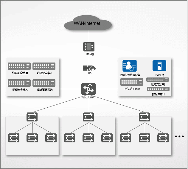 設(shè)備部署:為保障網(wǎng)絡(luò)的可靠性,非必要設(shè)備采用旁路部署,選擇恰當(dāng)規(guī)格性能的AZ6000設(shè)備,以旁路模式部署;安裝行為分析感知平臺(tái)“BA”,實(shí)現(xiàn)對(duì)數(shù)據(jù)的深度挖局,完成用戶畫像,體現(xiàn)數(shù)據(jù)價(jià)值。